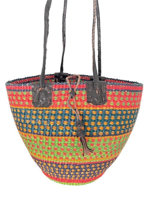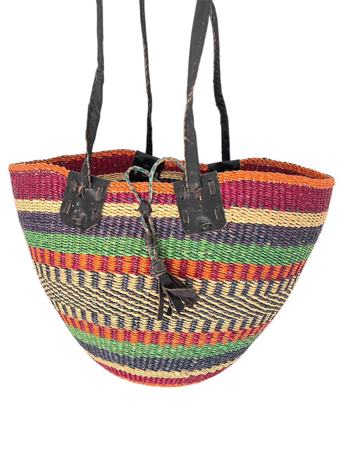 Unsere Einkaufstaschen aus Ghana sind handgefertigte Unikate aus robustem Savannengras. Mit stabilem Boden und doppeltem Lederriemen sind sie langlebig, leicht und angenehm zu tragen. Ob für den Einkauf, den Stadtbummel oder als Picknicktasche – die Bolga-Einkaufstasche vereint Vielseitigkeit, Nachhaltigkeit und zeitloses Design. Mit jedem Kauf unterstützt du faire Bezahlung und ein soziales Projekt für die Dorfgemeinschaft in Ghana.