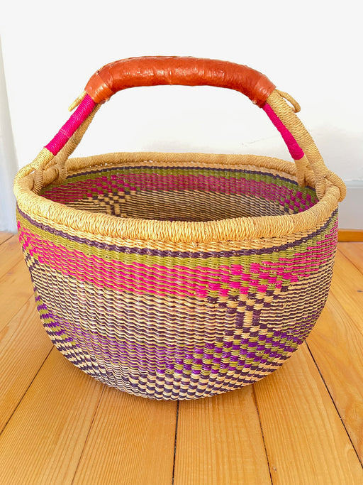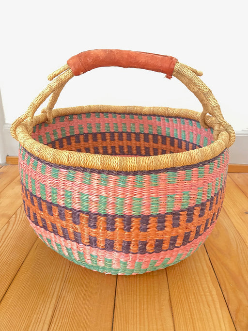 Vollständige Details anzeigenDiese stabile Basket Bag kommt aus Ghana. Die per Hand geflochtene Umhängetasche ist aus Elefantengras hergestellt und ein echter Alleskönner: der ...