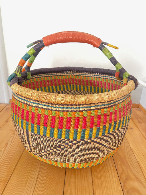 Dieser wunderschöne handgeflochtene Strohkorb kommt aus Ghana. Der Strohkorb ist aus Savannengras hergestellt und ein echter Alleskönner: er ist se...