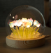 Der natürliche Holzsockel unterstreicht den hochwertigen Charakter dieser Lichtdeko – ideal als Geschenk oder liebevolles Wohnaccessoire.