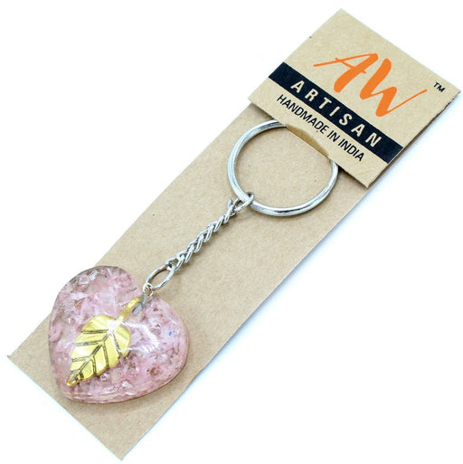 Orgonite Schlüsselanhänger – Rosenquarz Herzen & Golden Leaf