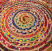Dieser runde Jute- und Baumwollteppich (90 cm) ist ein wunderschönes handgefertigtes Einzelstück aus Indien. Er verbindet natürliche Jute mit recycelten Baumwollstoffen und erschafft so ein stilvolles, robustes und nachhaltiges Wohnaccessoire.